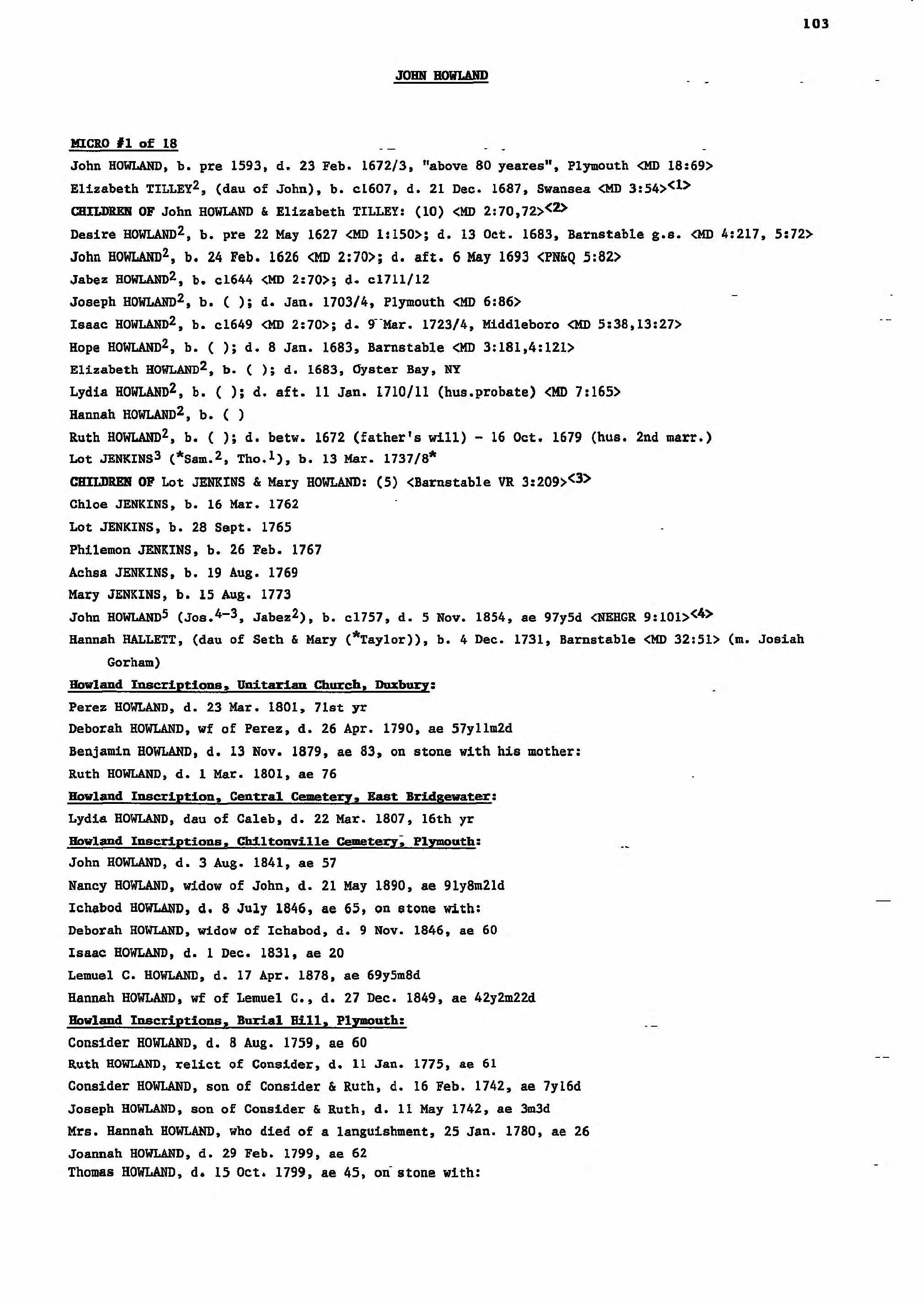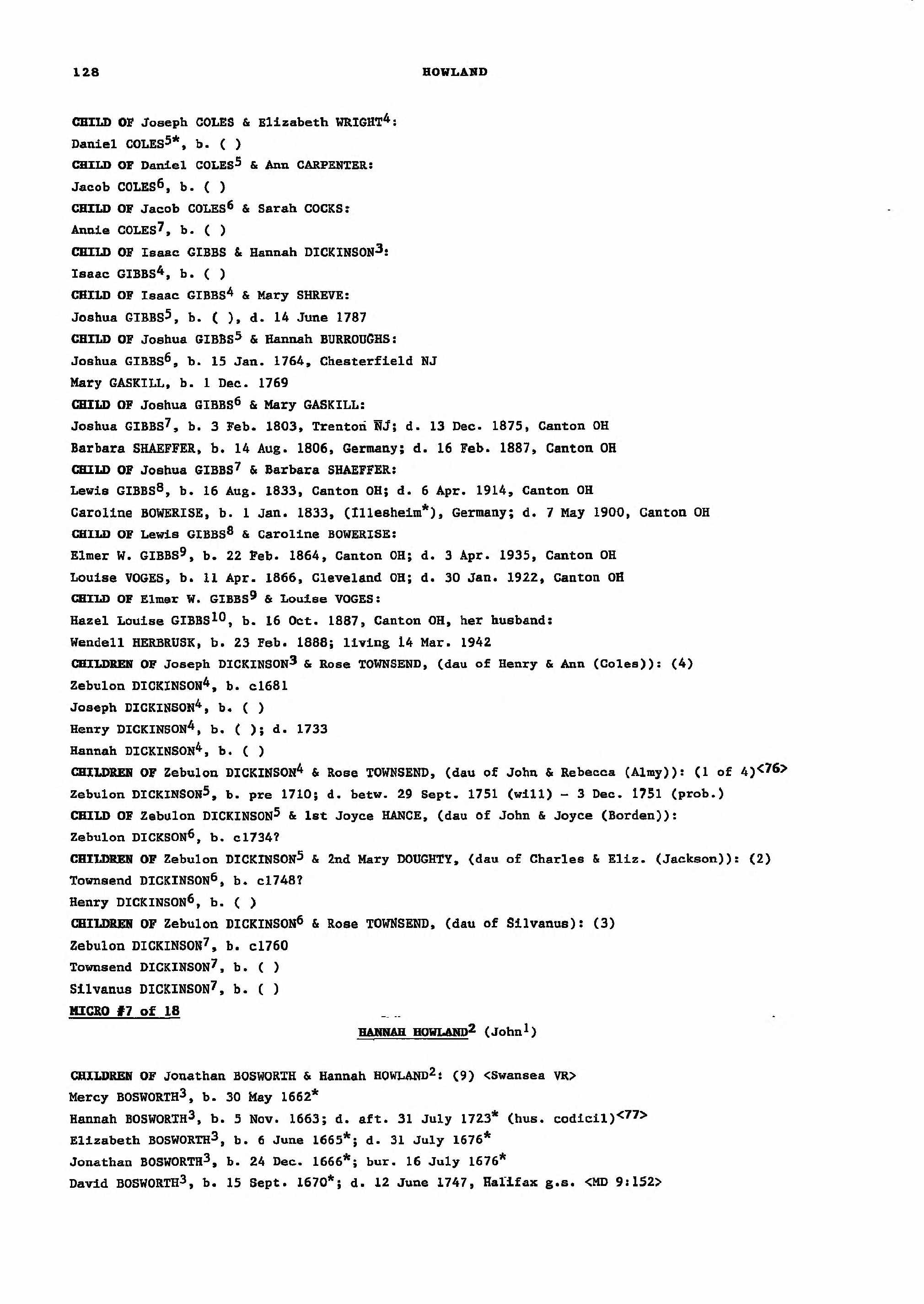 - Mayflower Births and Deaths, Vol. 1 and 2 > Volume 2 > Howland > Children of Jonathan Bosworth and Hanna Howland
