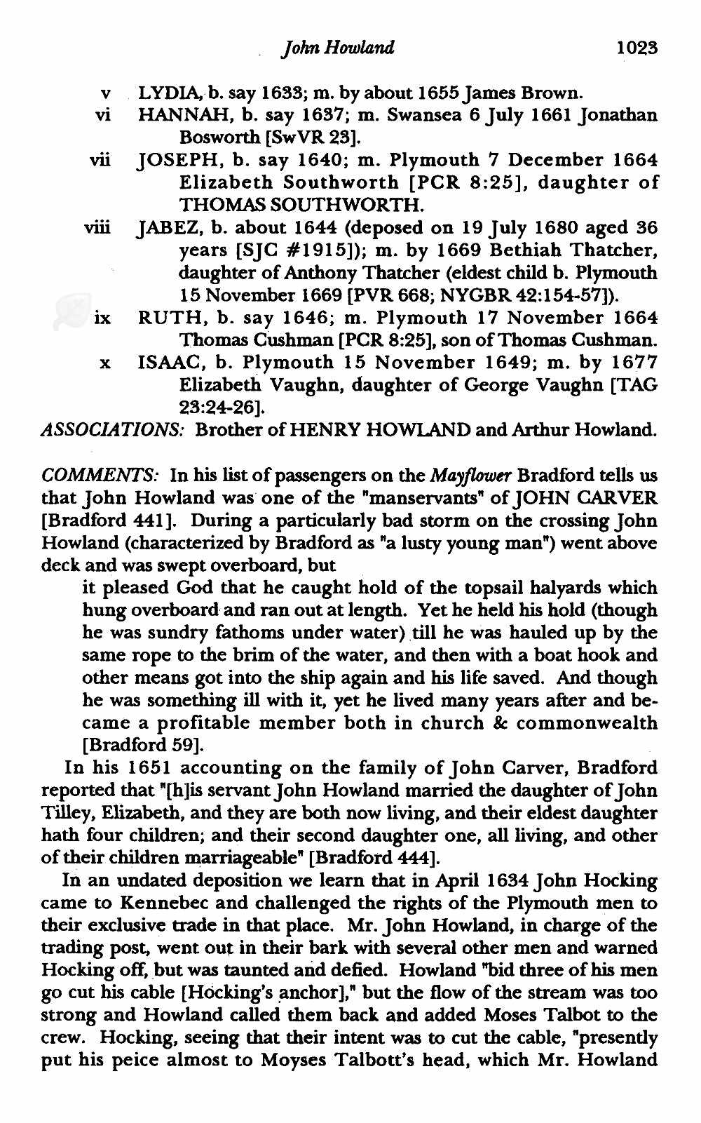- The Howlands in America by William Howland > Children of John and Elizabeth Howland