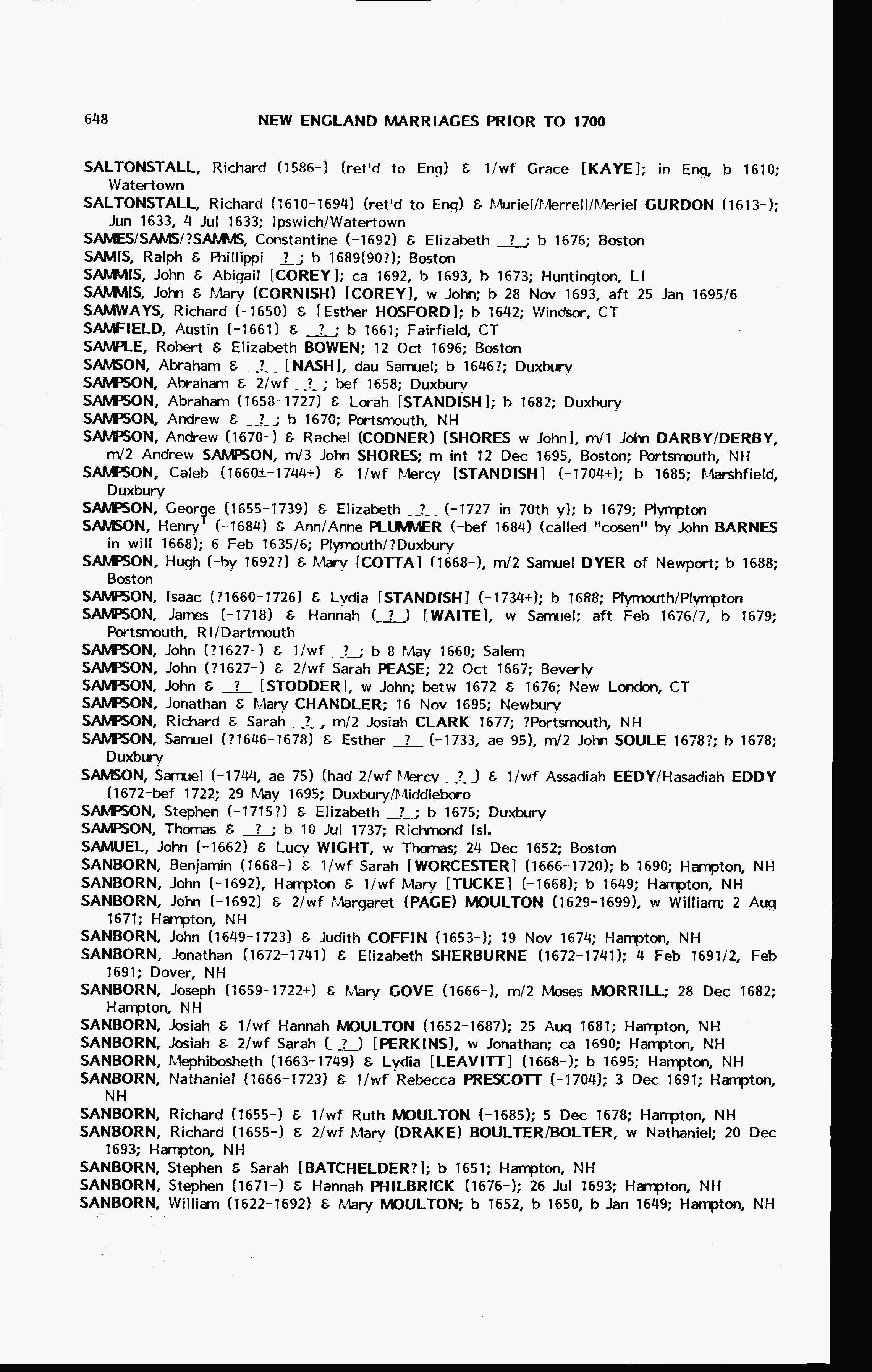 - U.S., New England Marriages Prior to 1700 > Name: Henry Sampson;