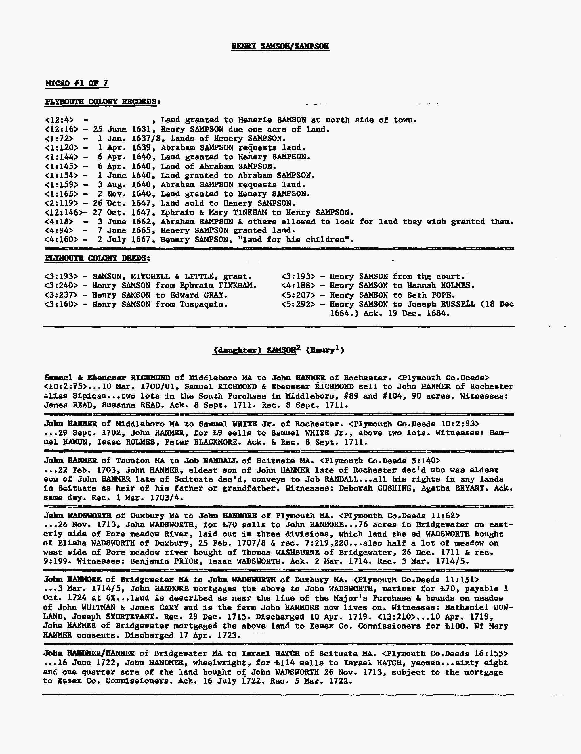 - Mayflower Deeds and Probates, 1600-1850 > Henry Sampson
