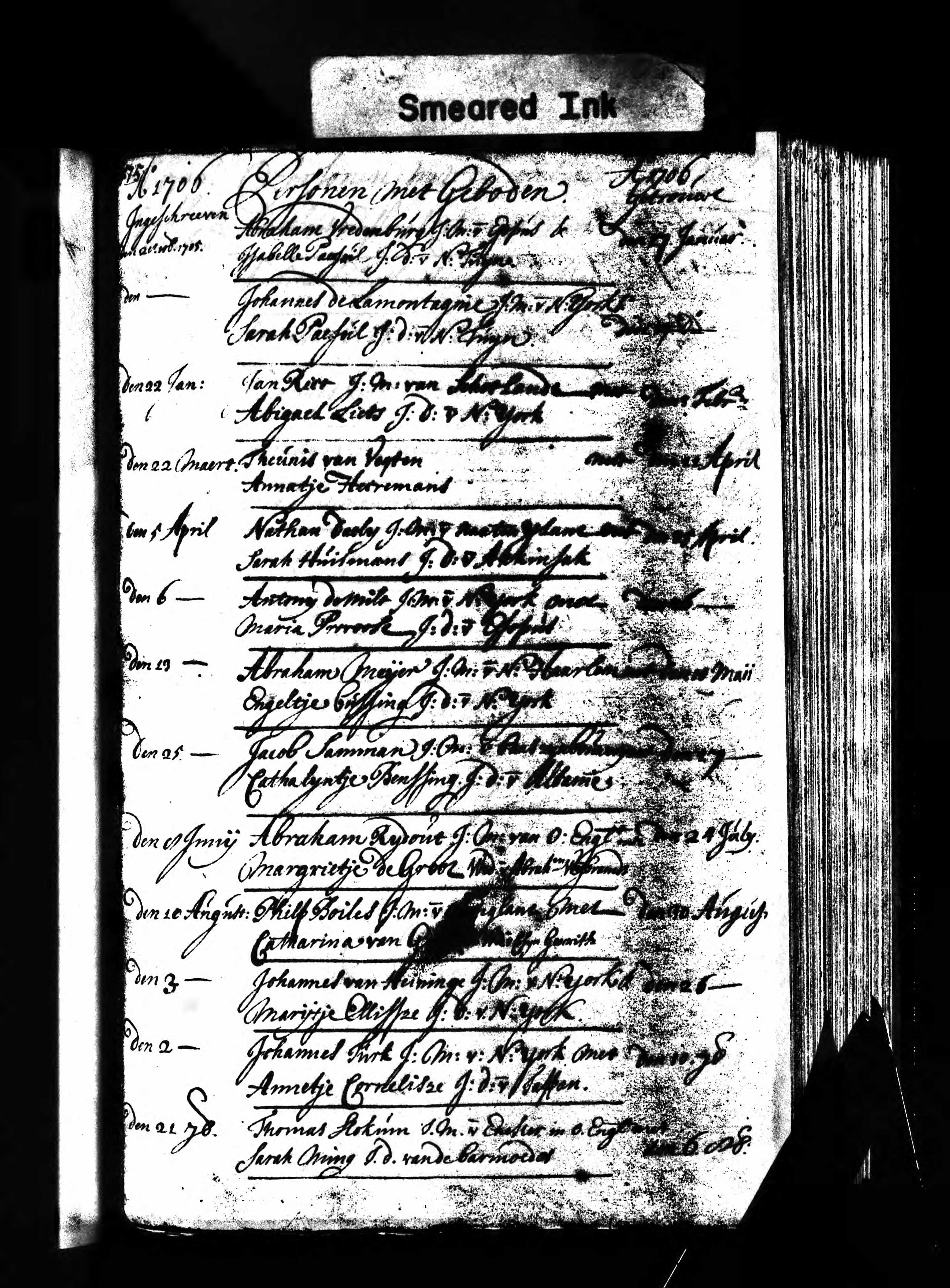- U.S. and International Marriage Records, 1560-1900 > Name: Jacob Sammons; Gender: Male; Spouse Name: Catalyntje Benson; Marriage Year: 1706; Number Pages: 1