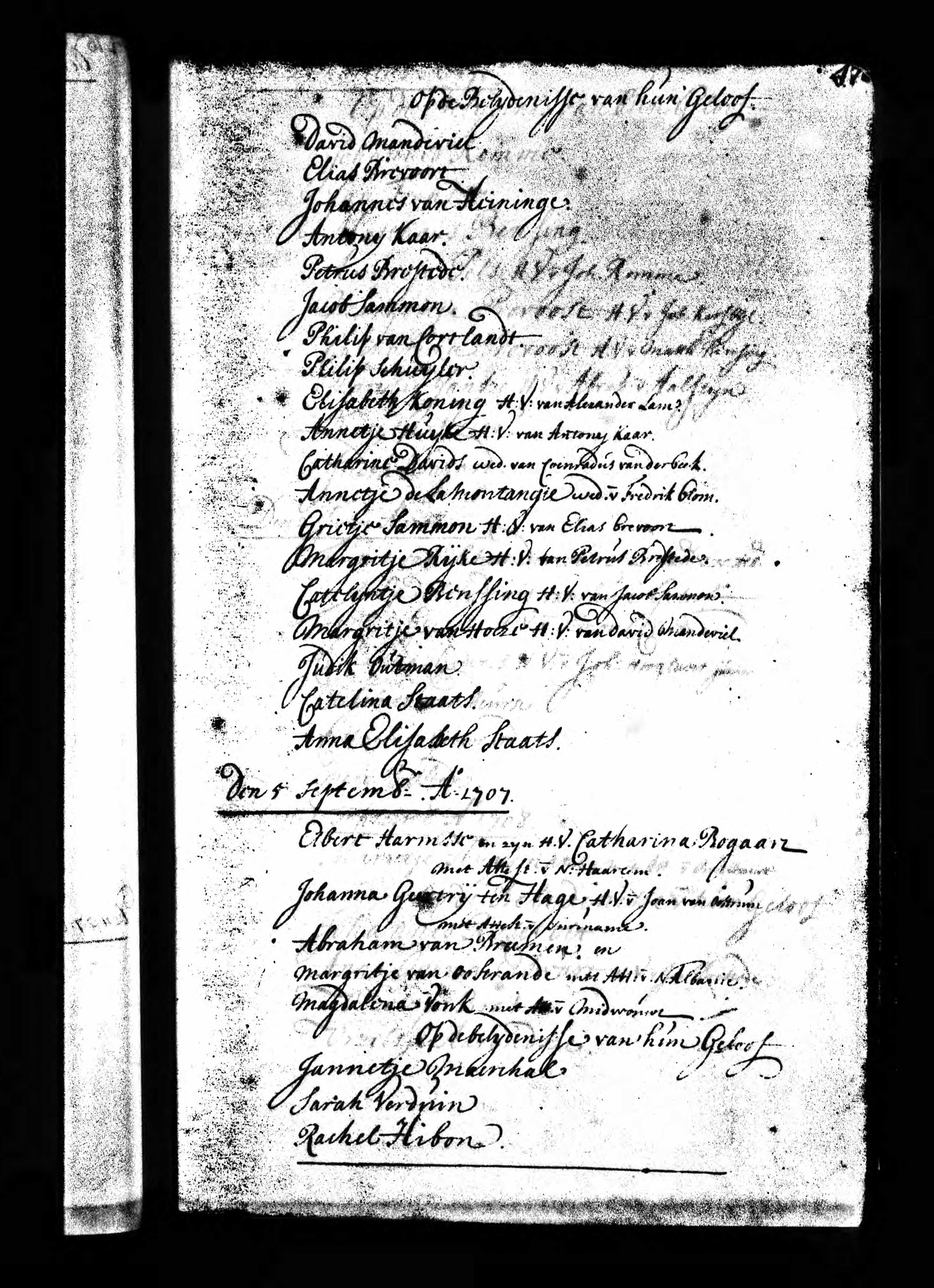 On 27 May 1706, Jacob married Catalyna (Catlyntje) Benson in the Collegiate Church of Manhattan, the oldest continuous Protestant congregation in North America. Their marriage record places them firmly within the Dutch Reformed community that defined early New York. Catalyna, born in 1688, was the daughter of Johannes Benson and Lysbeth Matheuse, families deeply rooted in the Hudson Valley’s Dutch settlements. Together, Jacob and Catalyna built a household that reflected the rhythms of Dutch colonial life—faith, family, and the steady expansion of settlement northward along the Hudson and Mohawk corridors.