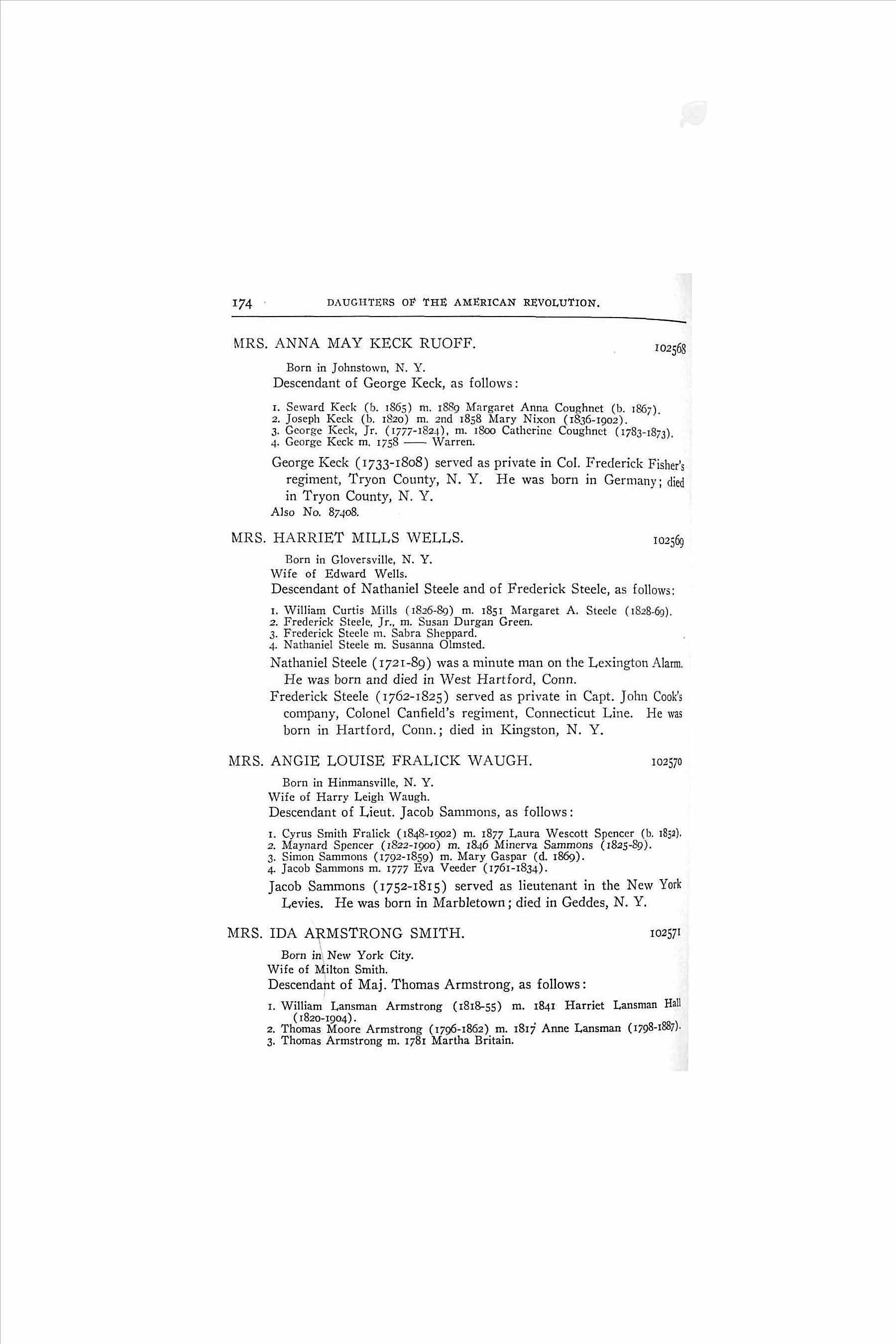 - Daughters of the American Revolution > Lineage Book: NSDAR: Volume 103: 1913 > Lieutenant Jacob Sammons > served as lieutenant in the New York Levies, was born in Marbletown; died in Geddes, N.Y.