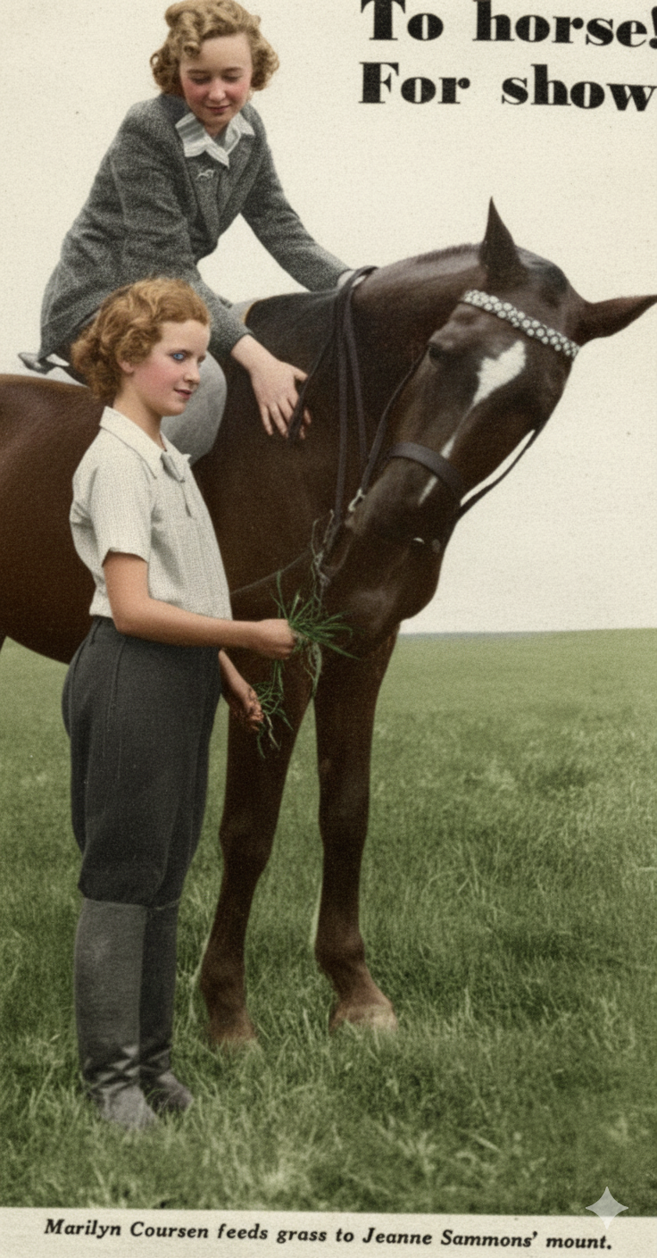 Jeanne, the most wonderful girl of my generation, and I met when we were in high school. She was not only beautiful, but very intelligent as well as a fine horsewoman and ice skater. When she was in college, she won several blue ribbons at horse shows.