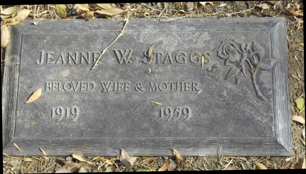 - California, U.S., Death Index, 1940-1997 > Name: Jeanne W Staggs; Gender: Female; Birth Date: 24 Mar 1919; Birth Place: Illinois; Death Date: 20 Jun 1959; Death Place: Sacramento; Mother’s Maiden Name: Larson; Father’s Surname: Sammons