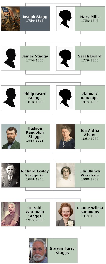 Relation of Joseph Stagg to Steven Barry Staggs: 4th great-grandfather