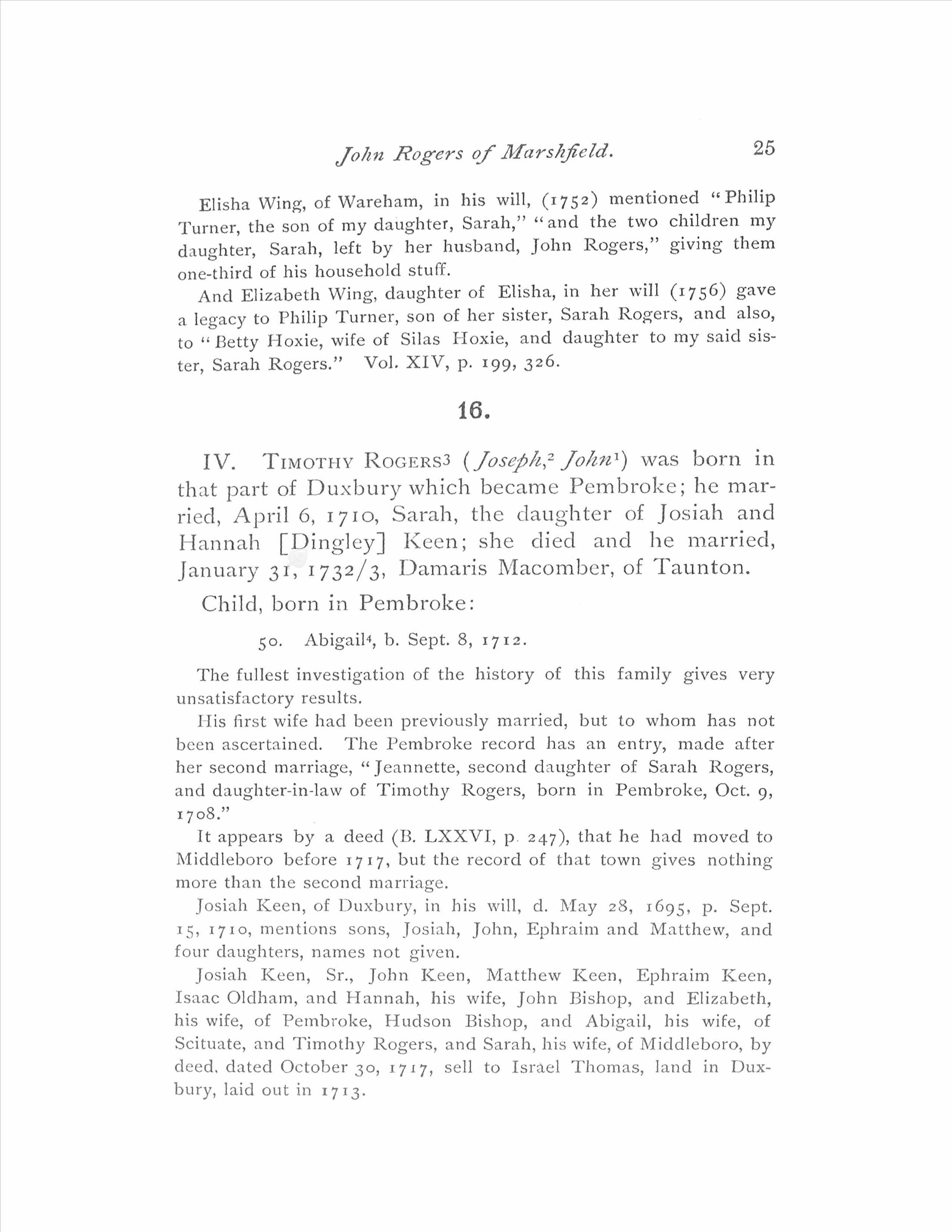 - North America, Family Histories, 1500-2000 > John Rogers of Marshfield and some of his descendants > daughter of Josiah and Hanna married Timothy Rogers