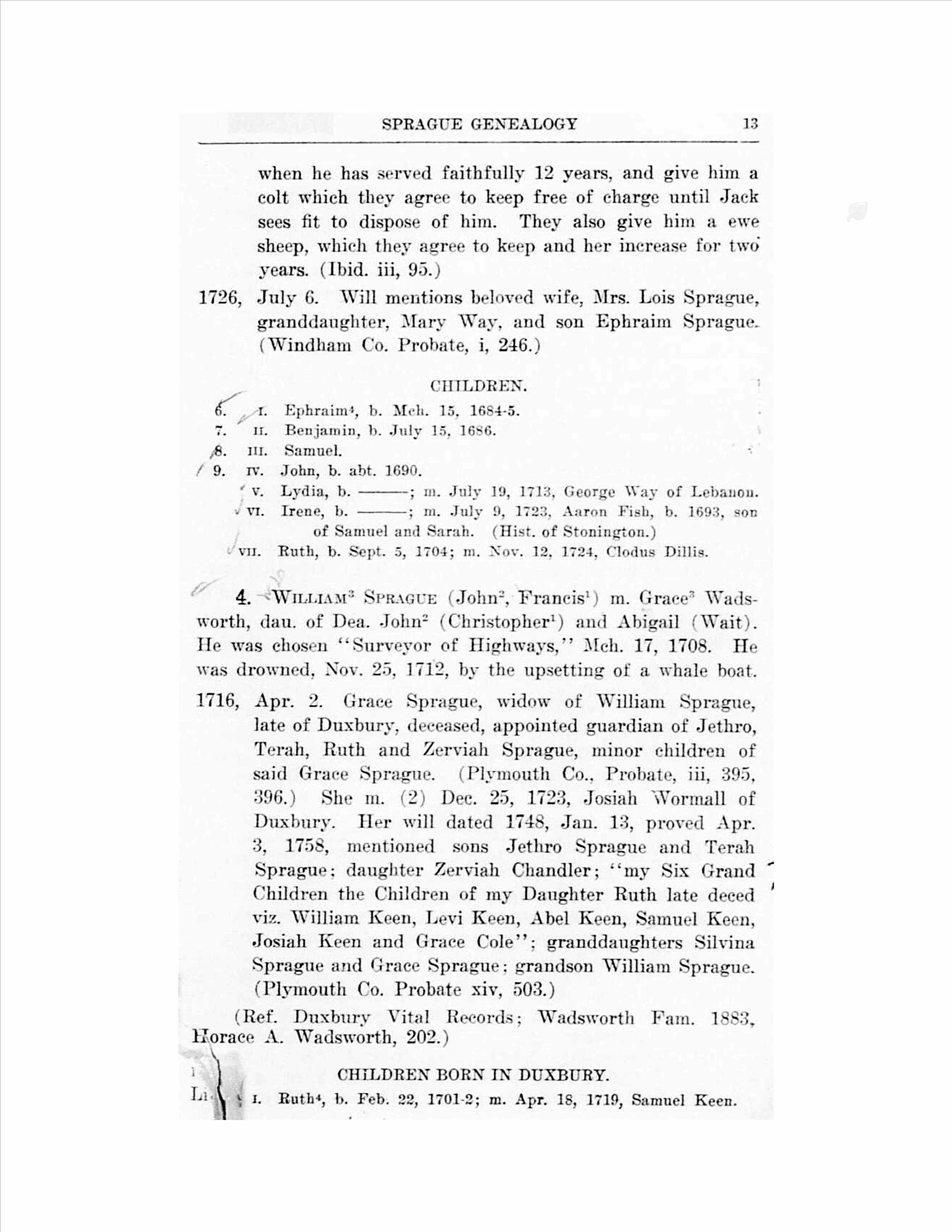 - Mary Oldham (1686-1775) daughter of Mercy Sprout