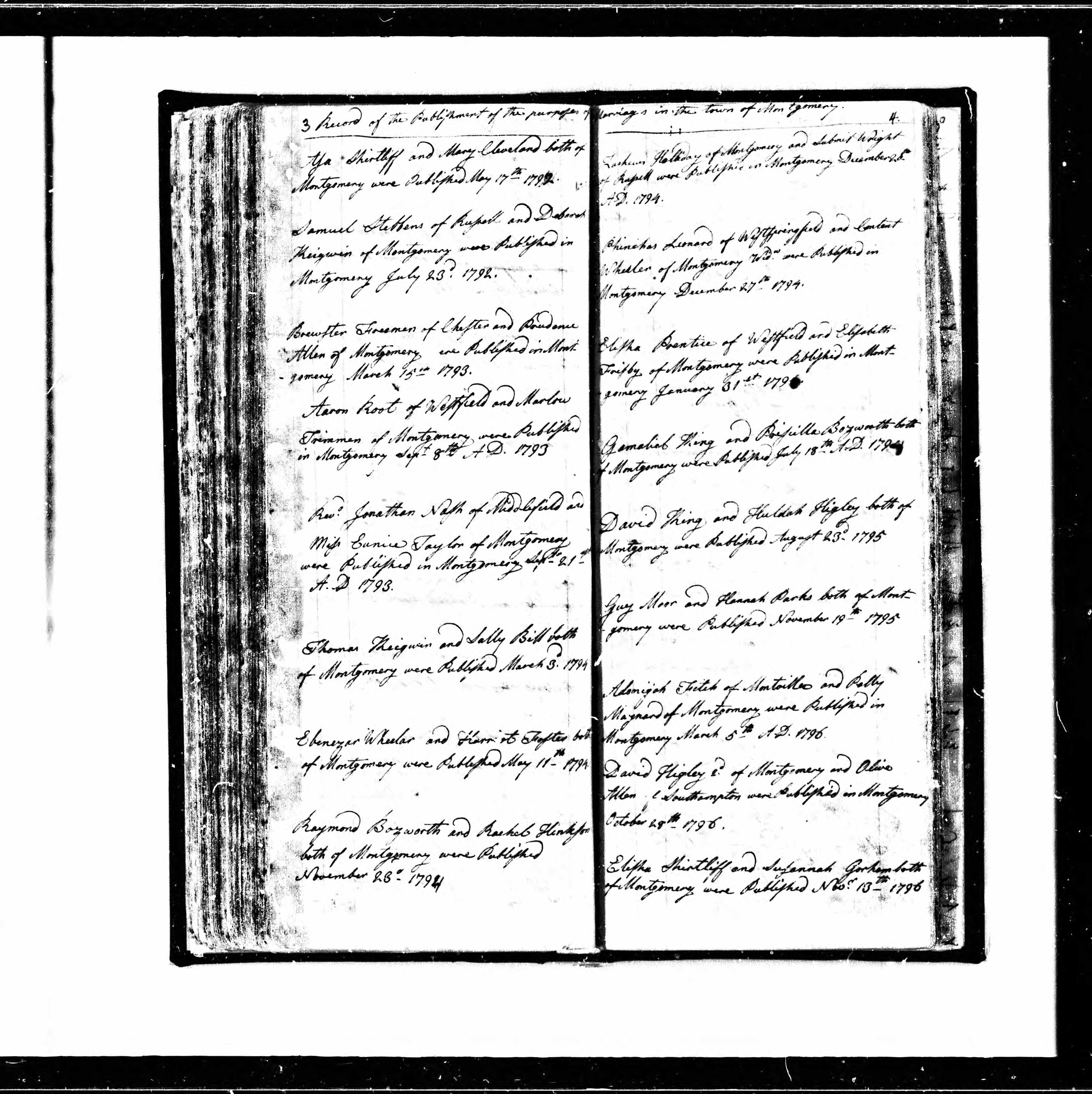 - Massachusetts, U.S., Town and Vital Records, 1620-1988 > Name: Raymond Bozworth; Record Type: Marriage; Marriage Date: 23 Nov 1794; Marriage Place: Montgomery, Massachusetts, USA; Spouse: Rachel Hinkson