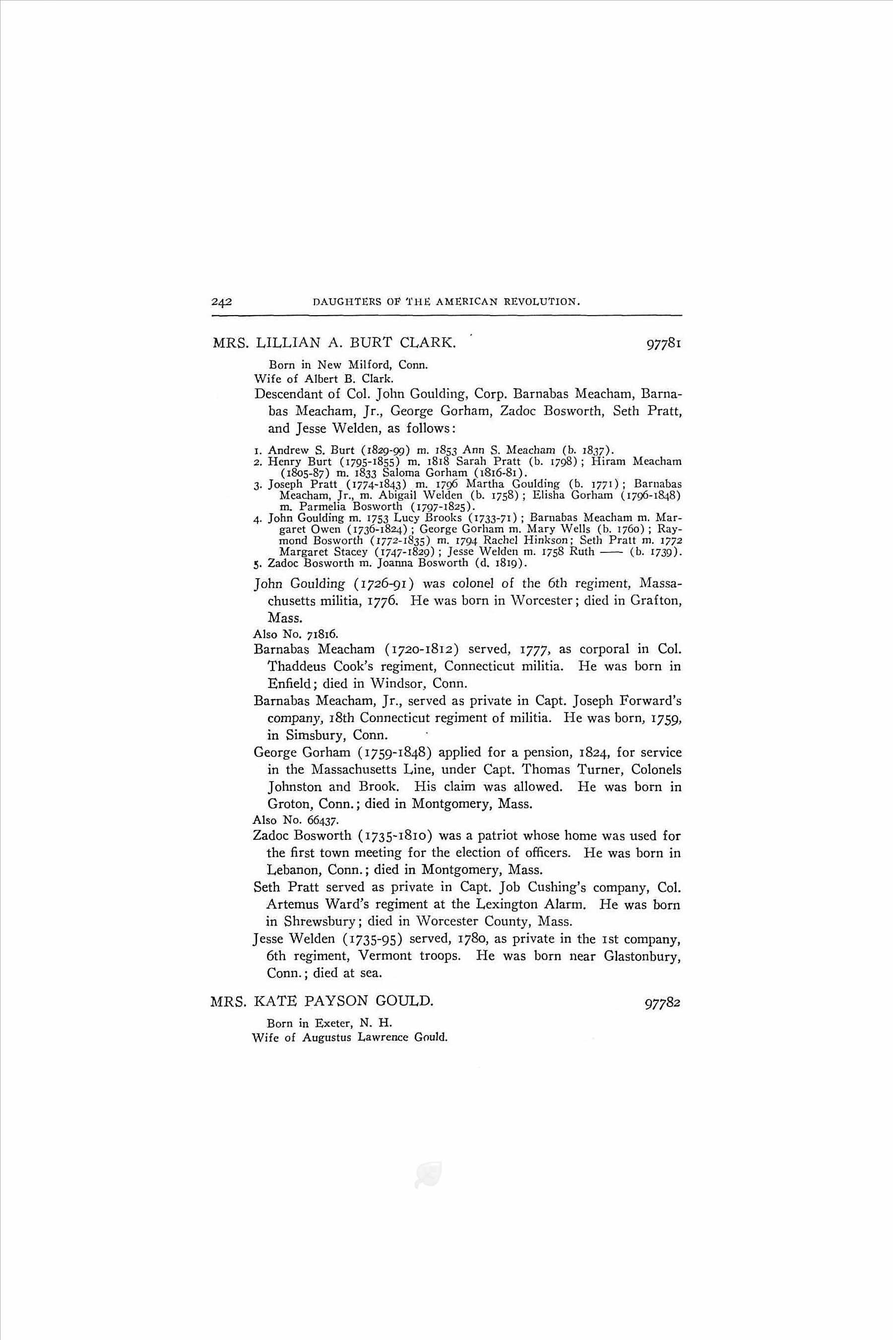 - North America, Family Histories, 1500-2000 > D > Daughters of the American Revolution > Lineage Book : NSDAR : Volume 098 : 1913 > Name: Raymond Bosworth; Birth Date: 1772; Father: Zadoc Bosworth; Mother: Joanna Bosworth