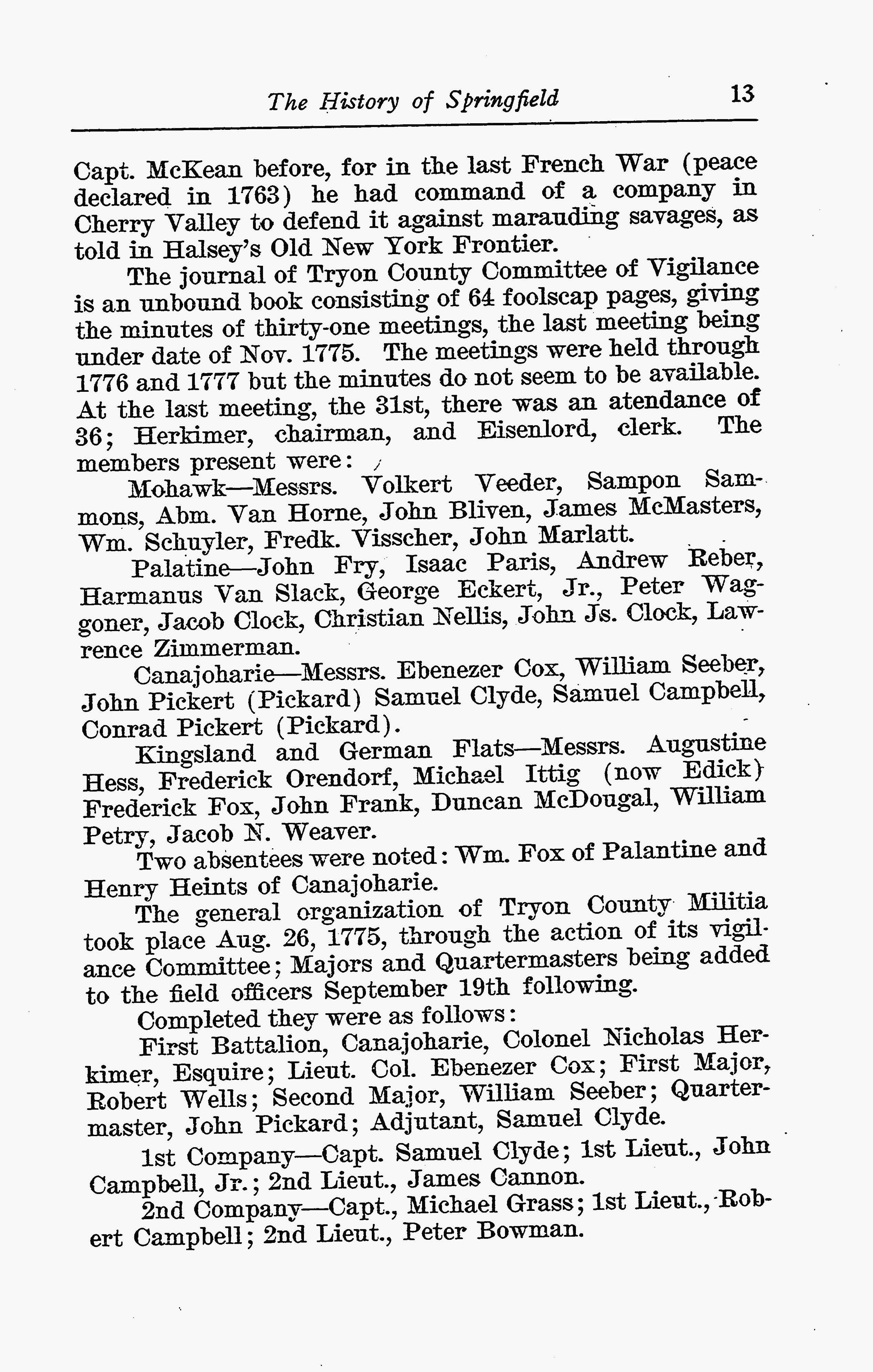 He spoke of old Mr. Fonda’s murder, of the cruelty of the raids, and of the futility of such a war. His words struck home. The Gazetteer records: