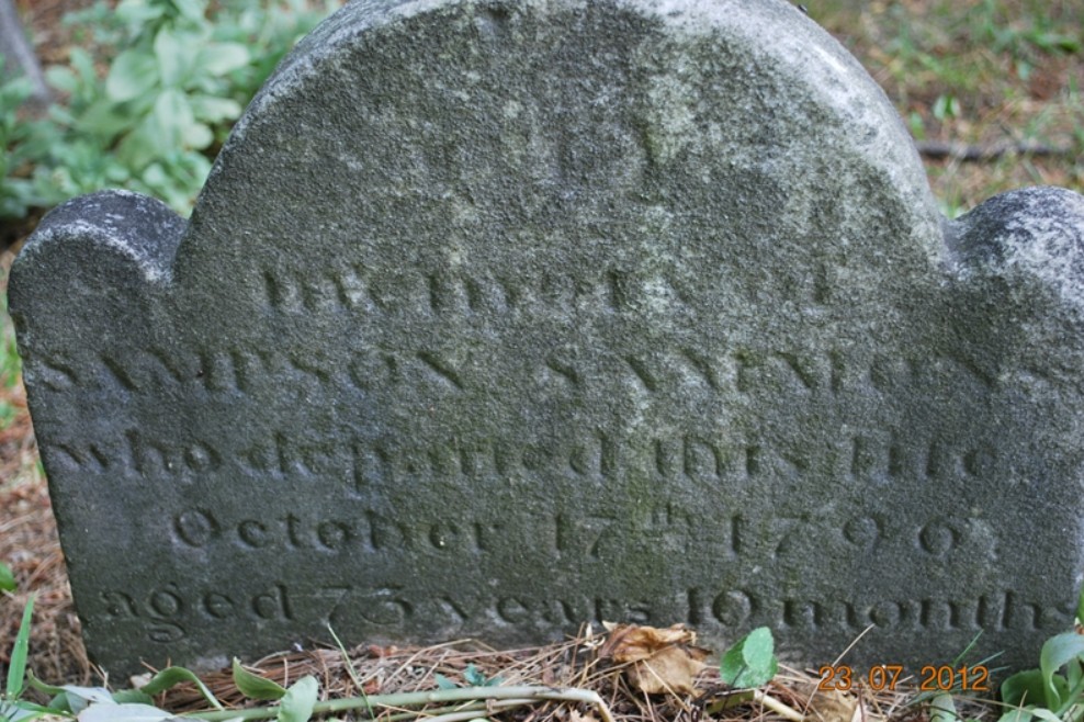 - Sampson Sammons’ headstone is inscribed: “Here lies SAMPSON SAMMONS who departed this life October 17th 1796 aged 73 years 10 months” That would indicate a birth in December 1722.