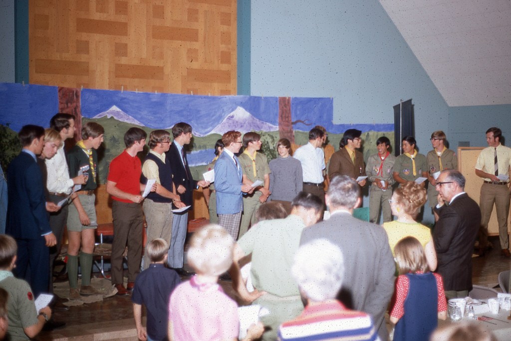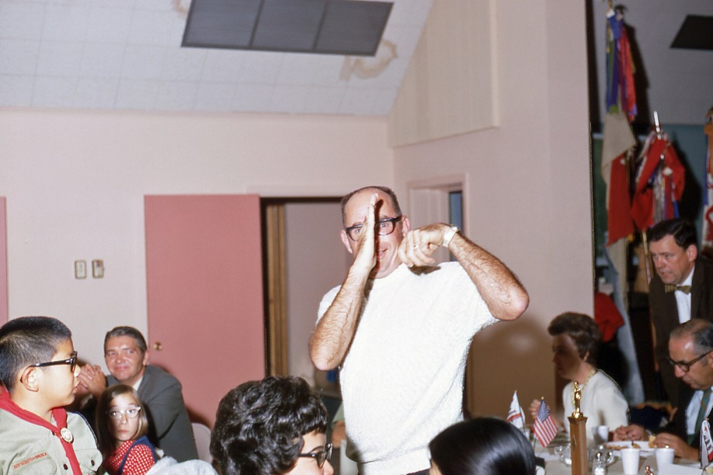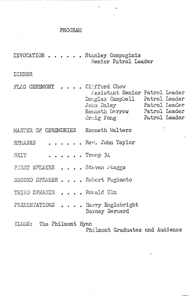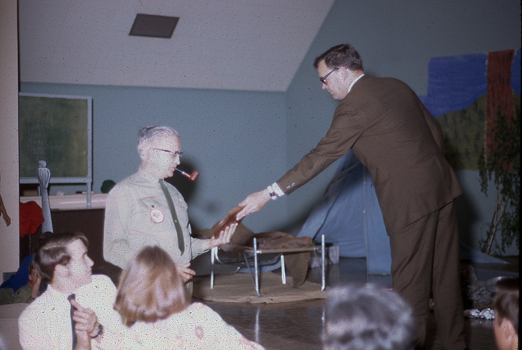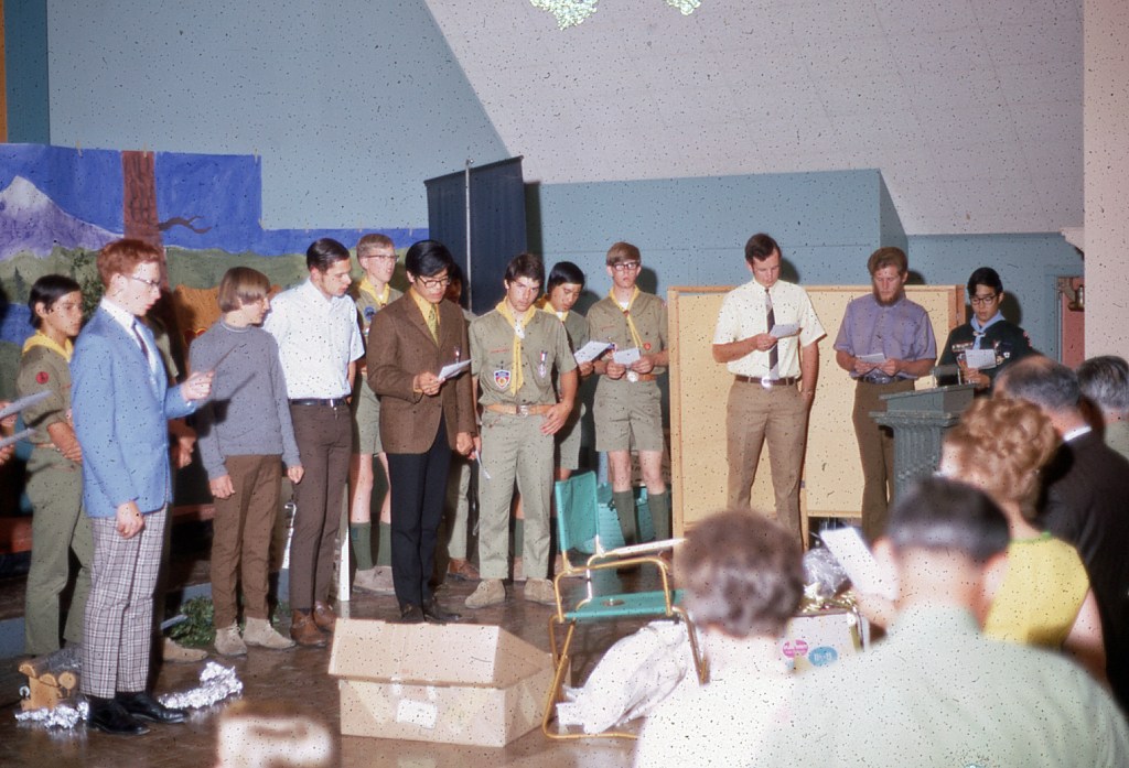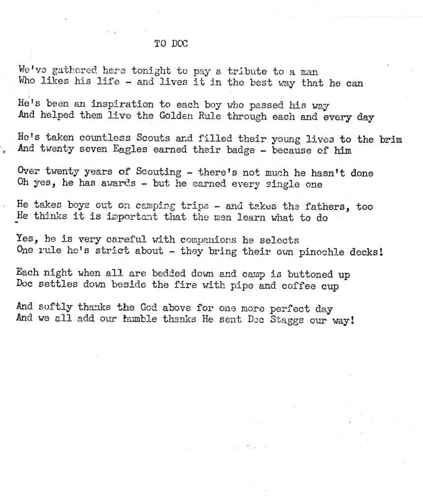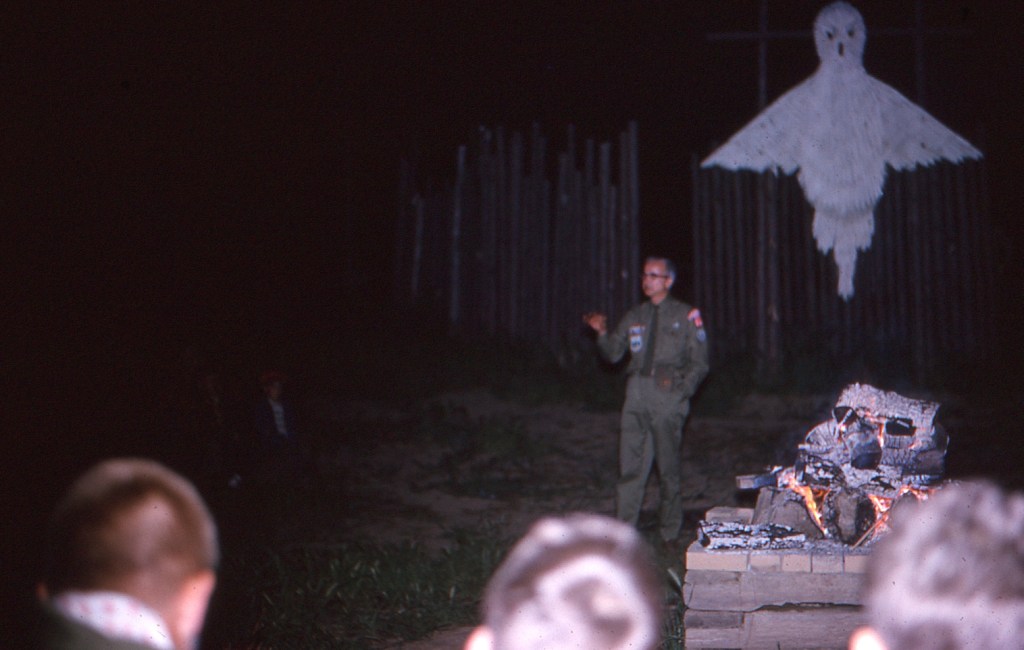 The adult leader campfireDoc Staggs at campfireRadio skit at the campfireDavid and Doc StaggsTime to pack upDavid StaggsDavid StaggsSteve and Doc StaggsDoc StaggsEagle Awards June 1964Eagle Awards June 1964Doc StaggsHarvey FujimotoRussell Berry teaching Doc and Rober Fujimoto to signNewspaper photographTenderfoot Steve Staggs