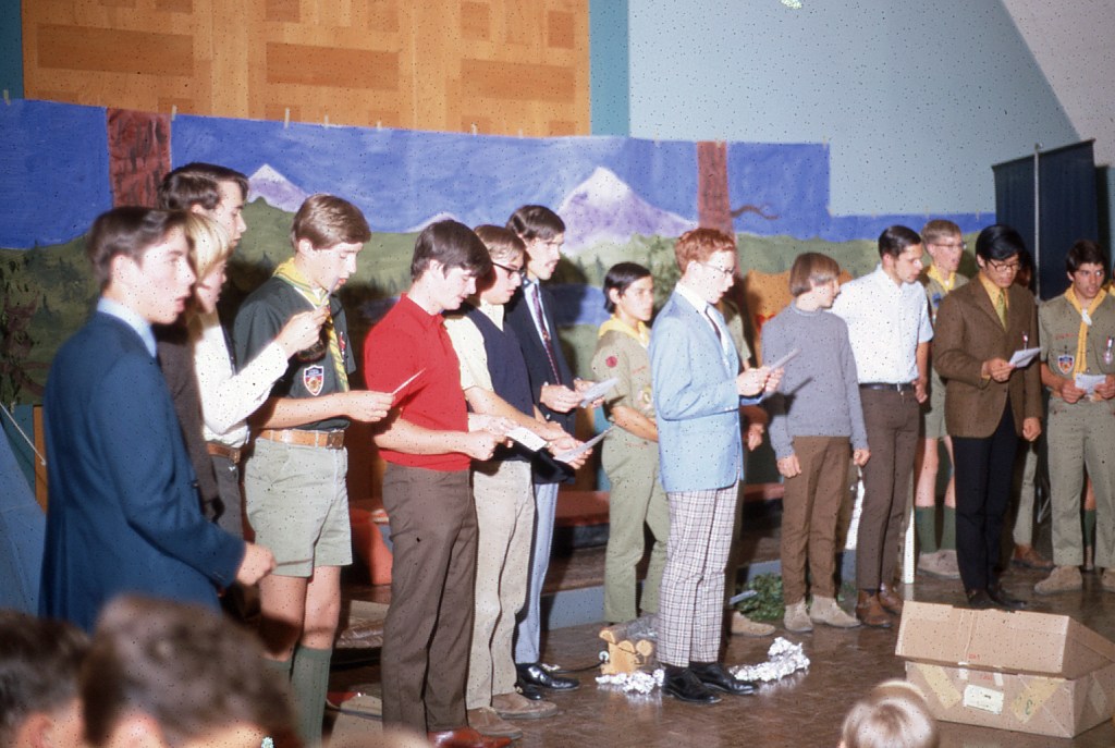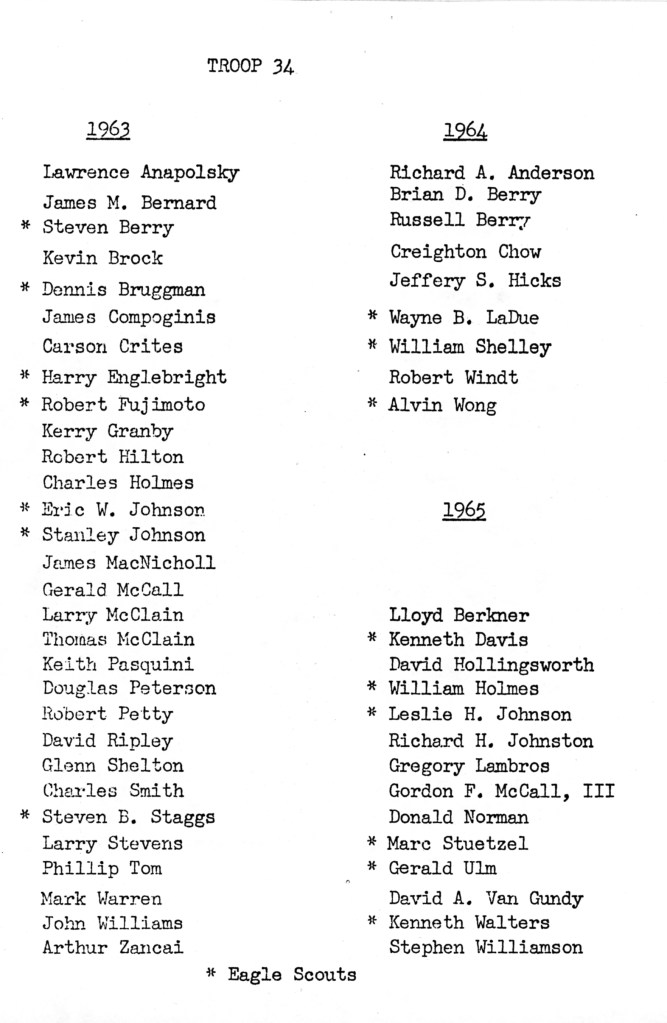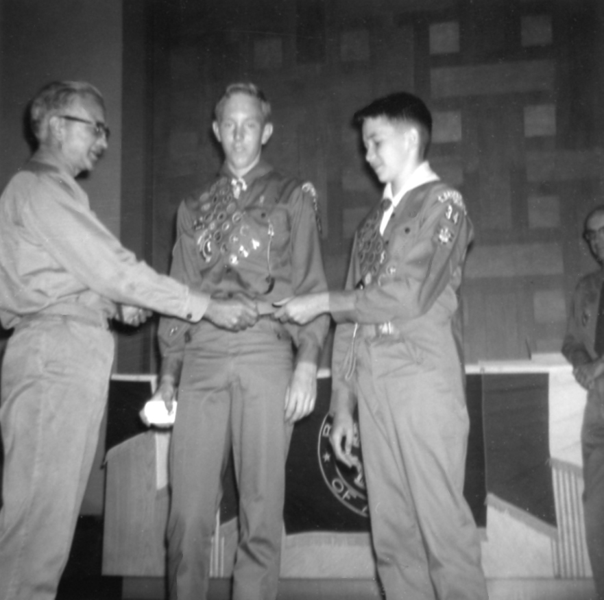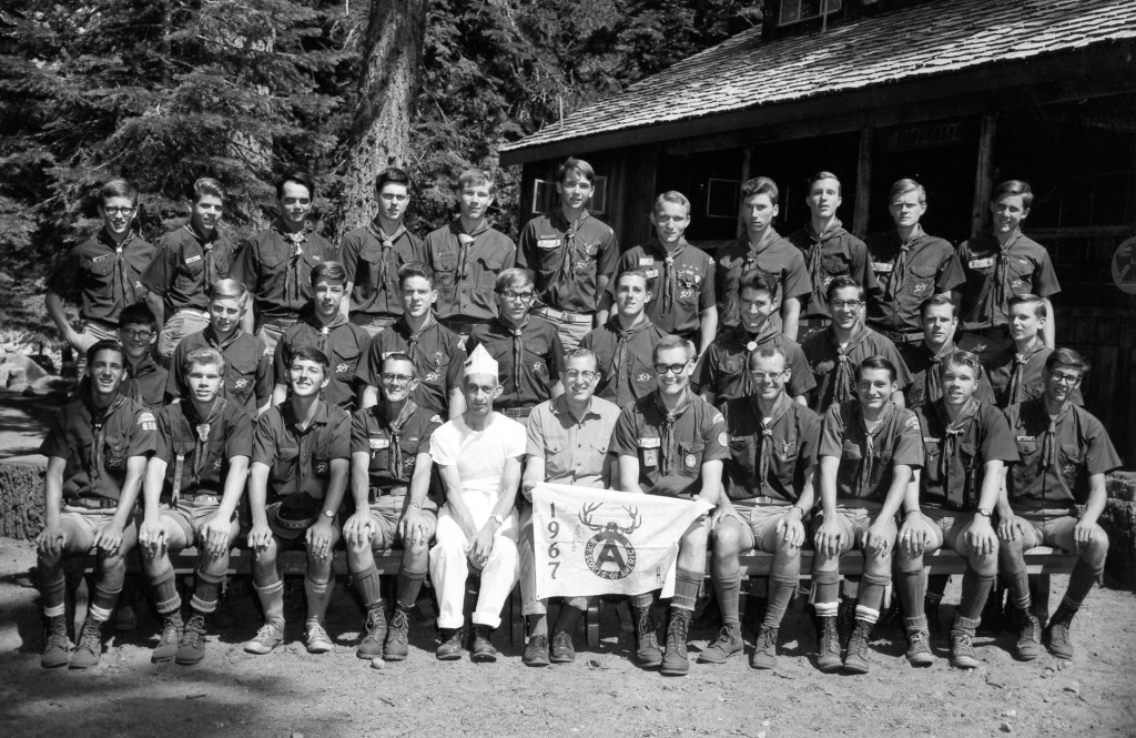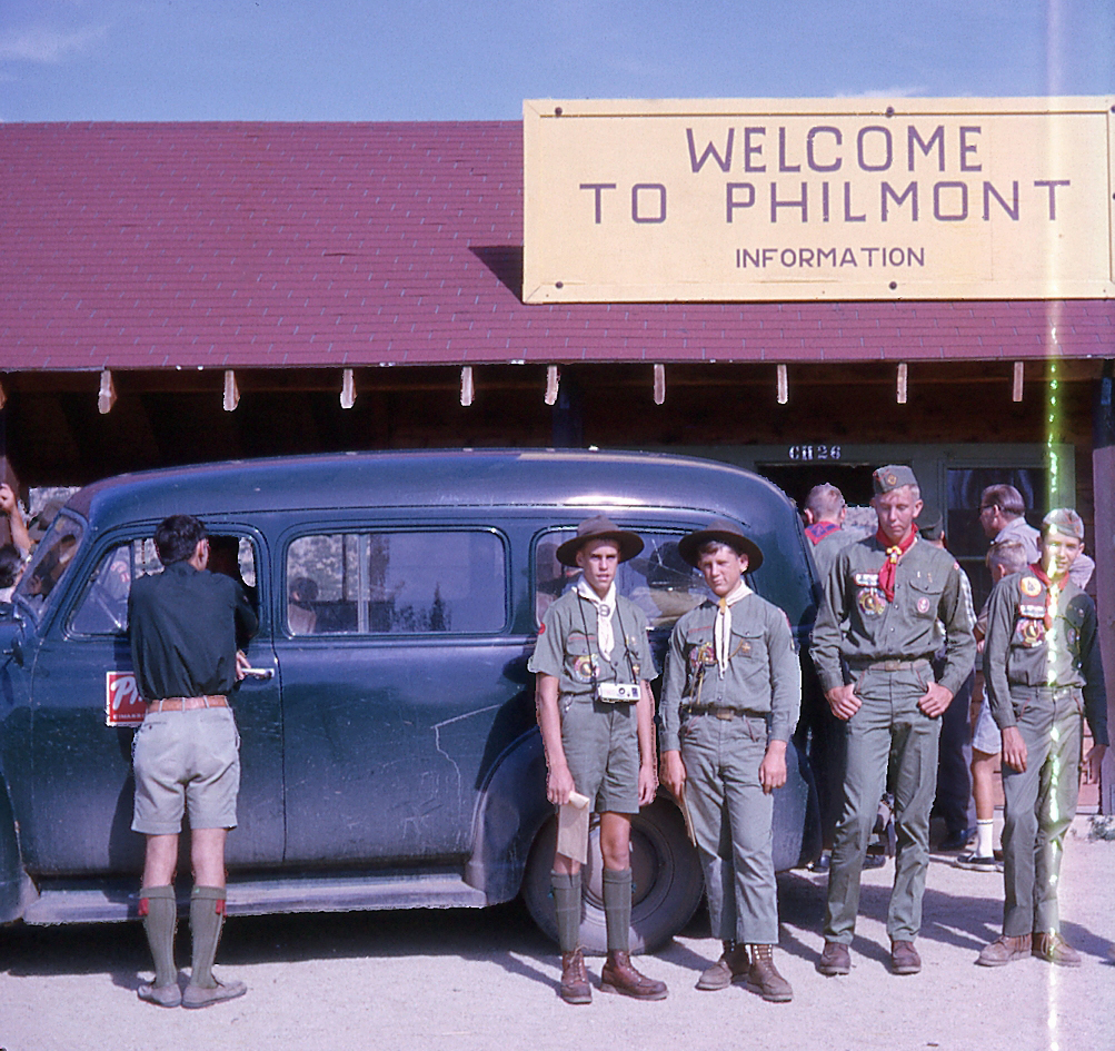 In 1962, Troop 34 scouts Stephen Barry, Dennis Bruggman, Harry Englebright, Charles Holmes and Steven Staggs attended the Junior Leader Instructor Training program at the Philmont Scout Ranch in New Mexico. Transportation was provided by Harold “Doc” Staggs, and his son David was on the trip.
