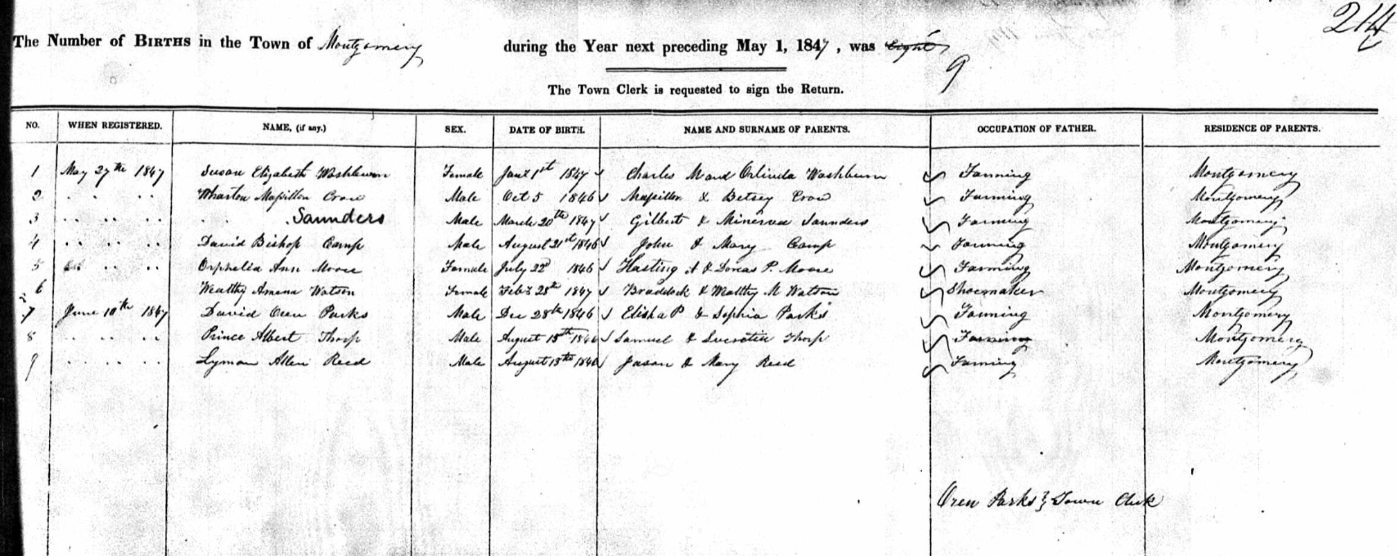 - Birth records indicate he was born in Montgomery, Massachusetts.