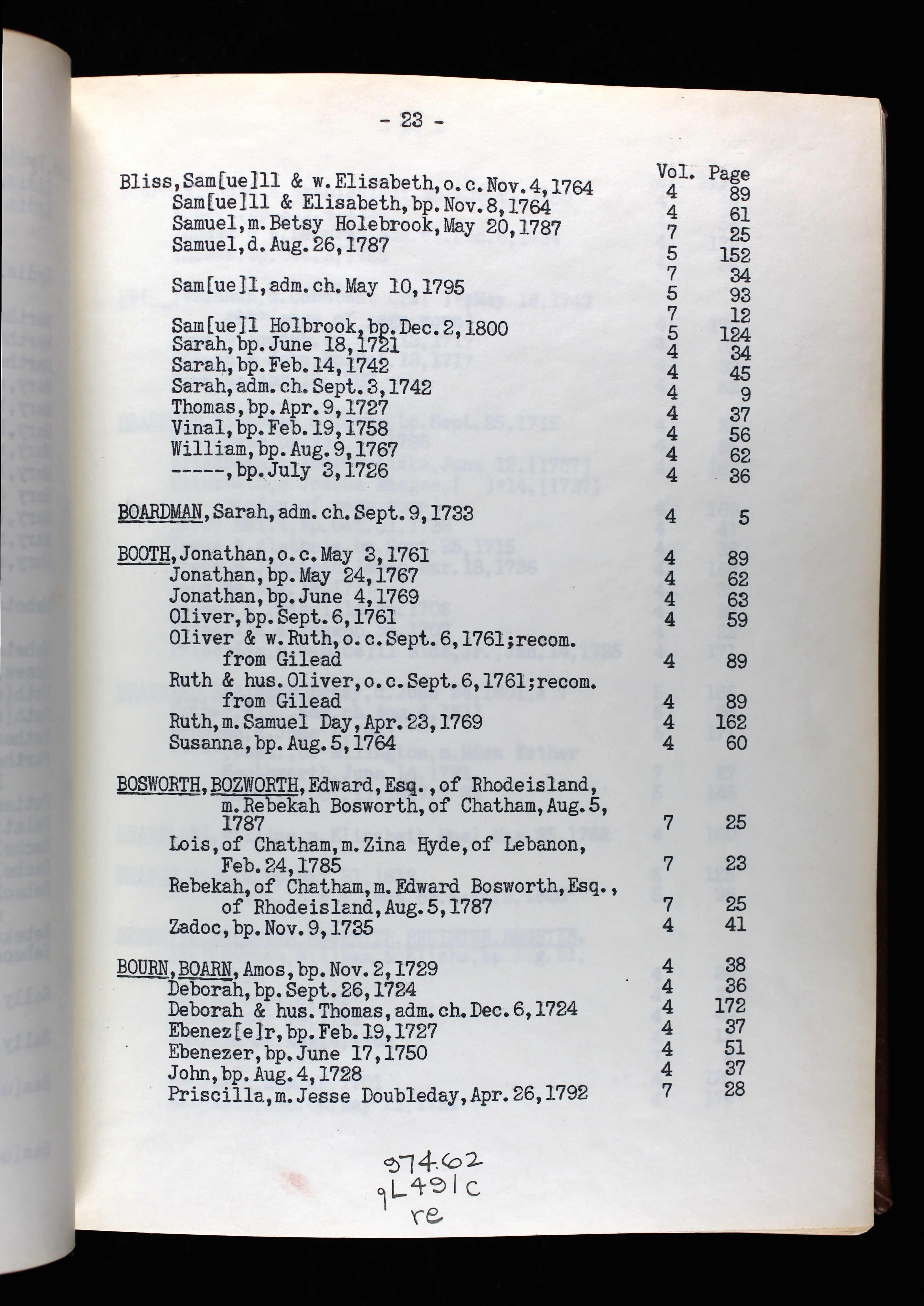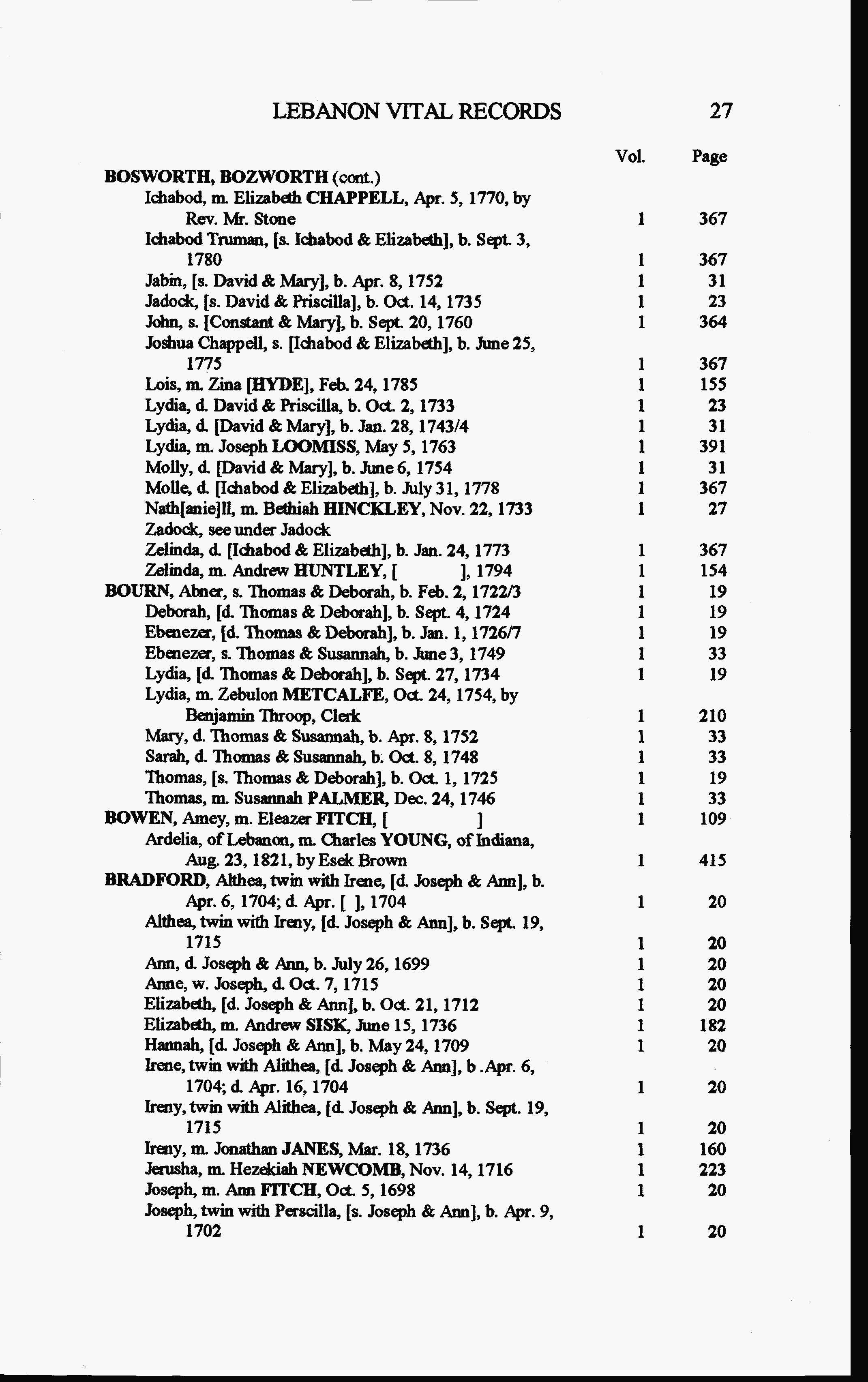 - Mayflower Births and Deaths, Vol. 1 and 2 > Volume 2 > Zadock Bosworth b. 24 Mar 1735