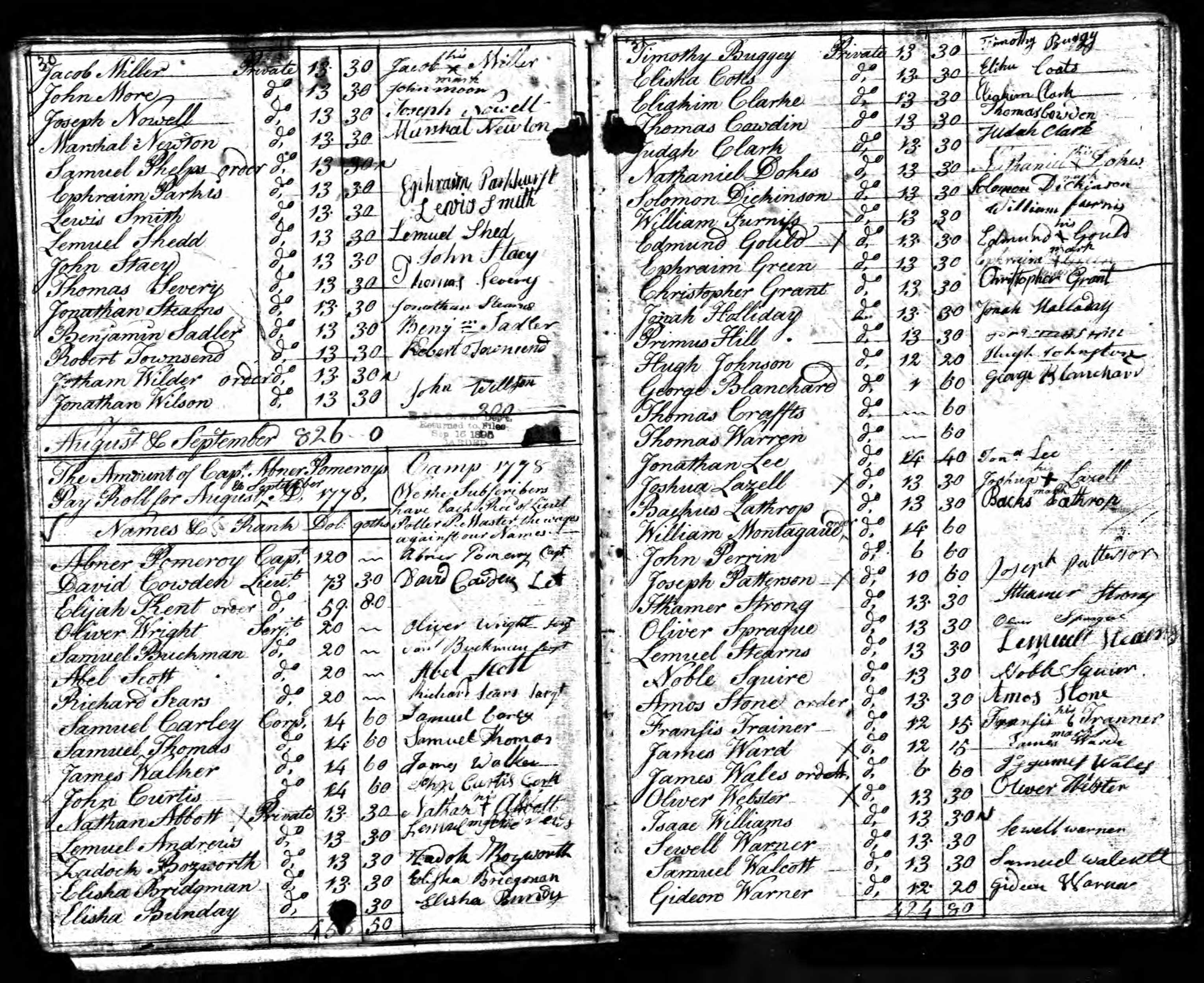 - U.S., Revolutionary War Rolls, 1775-1783 > Massachusetts > Cowells Company of Militia, 1776 (Folder 55) – Wood´s Regiment of Militia, 1778-1779 (Folder 90) > Name: Zadock Bozworth; Gender: Male; Military Place: Massachusetts, USA; State or Army Served: Massachusetts; Rank: Private